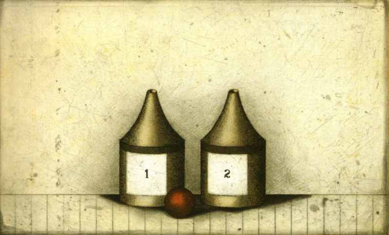 106. Zwei Flaschen 1968 Format: 22 x 36 cm Strichätzung, Aquatinta, Roulette, Sandpapier auf Kupfer.2 Platten, 3 Farben: gelb, rot, schwarz. Auflage: 80 + XX numerierte und signierte Exemplare. Druck: Willy Steinert, Weingarten Verlag: Albrecht-Dürer-Gesellschaft,Nürnberg Jahresgabe 1968 der Albrecht-Dürer Gesellschaft, Nürnberg |