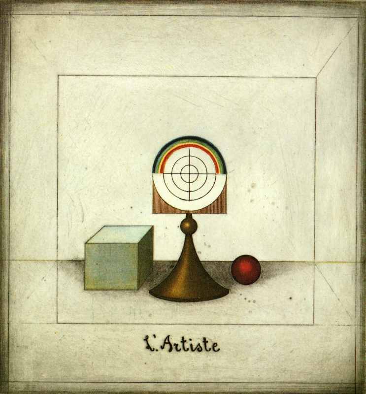 113. L'Artiste 1969 Format: 30 x 28 cm Strichätzung, Aquatinta, Roulette, Sandpapier auf Kupfer.3 Platten, 4 Farben: gelb, rot, blau, schwarz. Auflage: 100 + XX numerierte und signierte Exemplare. Druck: Willy Steinert, Weingarten Verlag: Rembrandt Verlag, Berlin Für die Grafikmappe "11 Blätter phantastischer Graphik", mit den Künstlern Peter Ackermann, Erich Brauer, Uwe Bremer, Ernst Fuchs, Rudolf Hausner, Friedrich Meckseper, Pit Morell, Heinrich Richter, Bernhard Schultze, Ursula, Paul Wunderlich. Erschienen 1969 im Rembrandt Verlag, Berlin |