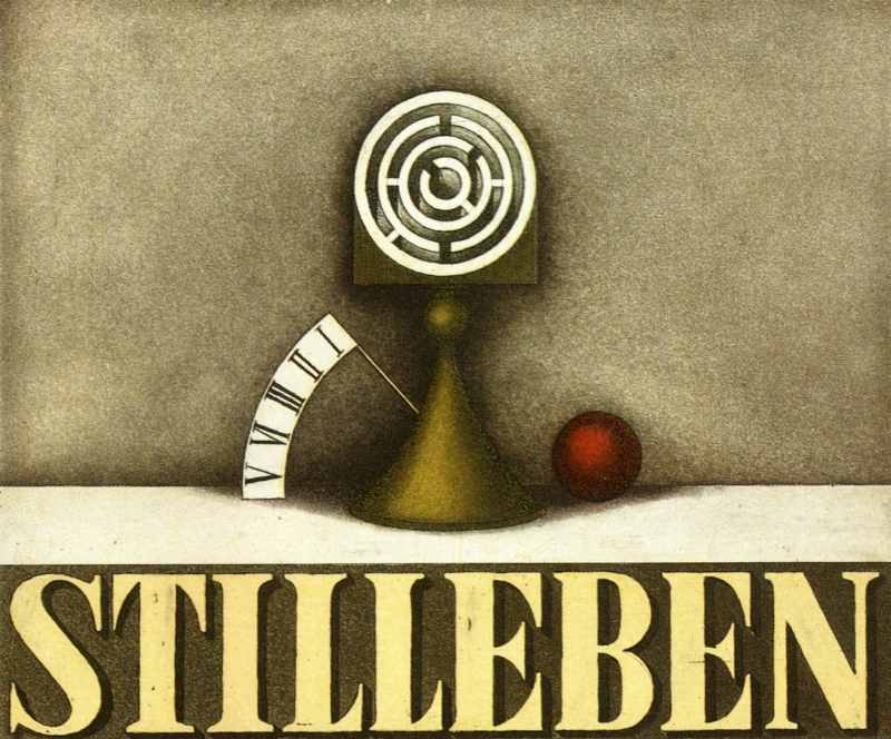 121. Stilleben 1970 Format: 14 x 17 cm Strichätzung, Aquatinta, Roulette, Kaltnadel, Sandpapier auf Kupfer.2 Platten, 3 Farben: gelb, rot, schwarz. Auflage: 100 numerierte und signierte Exemplare. Druck: Druckgrafik Kätelhön, Wamel Zusätzlich existieren 2 unterschiedliche, signierte Zustandsdrucke. |