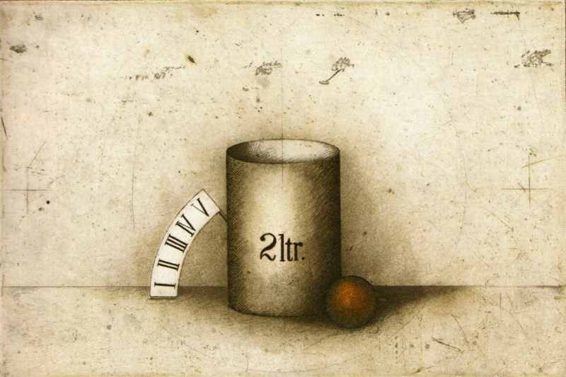 122. 2 ltr. 1970 Format: 20 x 30 cm Strichätzung,Verni mou, Roulette, Aquatinta auf Kupfer.2 Platten, 3 Farben: orange, graugrün, schwarz. Auflage: 75 + XXV numerierte und signierte Exemplare. Druck: Druckgrafik Kätelhön, Wamel Verlag: Galerie Niedlich, Stuttgart (römisch numerierte Exemplare) |