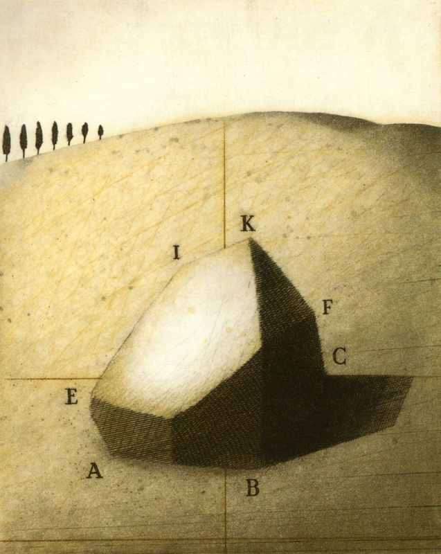 130. Stein 1971 Format: 20 x 16 cm Strichätzung, Kaltnadel, Roulette auf Kupfer,2 Platten, 2 Farben: gelb, schwarz. Auflage: 80 + XX numerierte und signierte Exemplare Druck: Druckgrafik Kätelhön, Wamel Verlag: Steintorverlag, Burgdorf / Hannover Für das Mappenwerk "Odradek". Dreizehn Radierungen zu der Erzählung "Die Sorge des Hausvaters" von Franz Kafka, mit den Künstlern Peter Ackermann, Peter Collien, Michael Coudenhove-Kalergi, WP Eberhard Eggers, Ernst Fuchs, Thomas Häfner, Alfred Hrdlicka, Friedrich Meckseper, Arnulf Rainer, Kurt Regschek, Markus Vallazza, Woldemar Winkler, Anatol Wyss. Erschienen 1971 im Steintorverlag, Burgdorf / Hannover. |