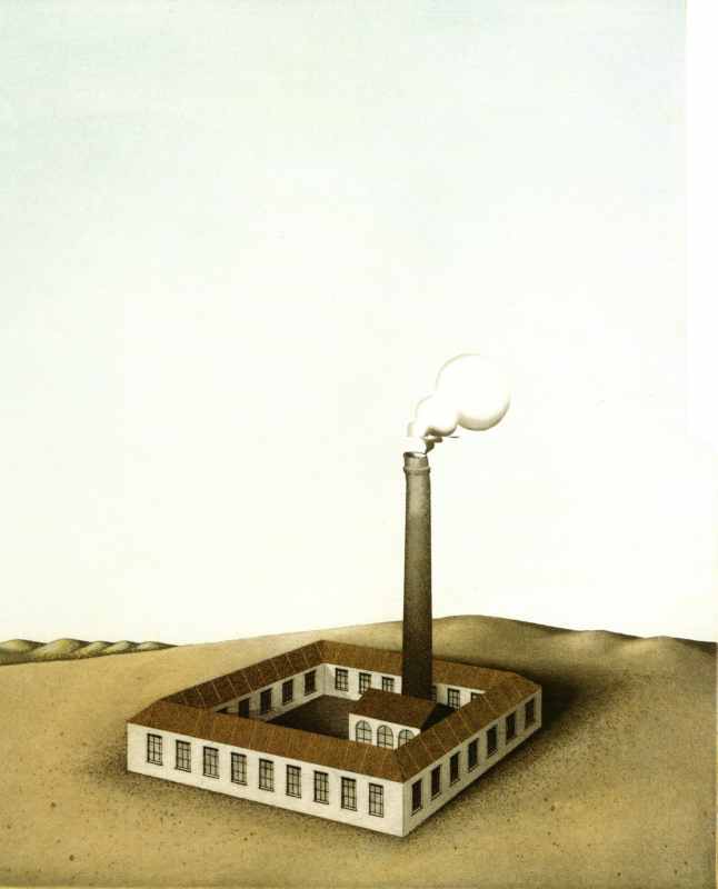 133. Fabrik 1971 Format: 56 x 47 cm Strichätzung, Kaltnadel, Aquatinta, Sandpapier auf Kupfer3 Platten, 3 Farben: gelb, blau, schwarz. Auflage: 100 + XX numerierte und signierte Exemplare Druck: Druckgrafik Kätelhön, Wamel Verlag: Galerie Wildbrand, Köln |