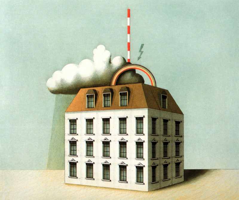 141. Haus 1972 Format: 50 x 59 cm Strichätzung, Aquatinta, Roulette auf Kupfer.3 Platten, 4 Farben: gelb, rot, blau, schwarz . Auflage: 100 + XXV numerierte und signierte Exemplare Druck: Druckgrafik Kätelhön, Wamel |