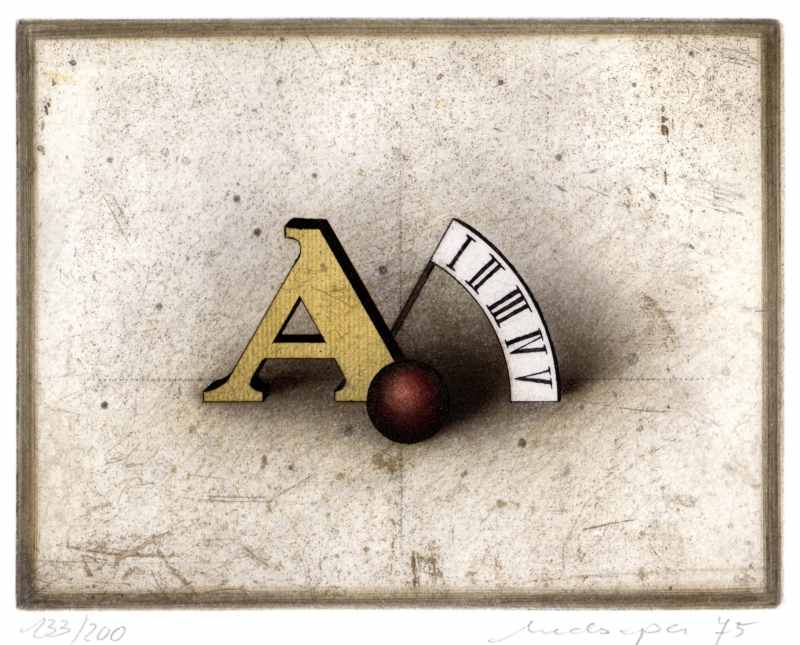 170. Archsum 1975 Format: 11.5 x 15 cm Strichätzung, Aquatinta, Roulette, Sandpapier auf Kupfer.3 Platten, 4 Farben: gelb, rot, graugrün, schwarz. Auflage: 200 + XX numerierte und signierte Exemplare Druck: Atelier Georges Leblac, Paris Verlag: Galerie Schmücking, Braunschweig Beilage für die Vorzugsausgabe des Werkverzeichnisses der Radierungen 1956 - 1975. Erschienen 1975 im Verlag der Galerie Schmücking, Braunschweig. |