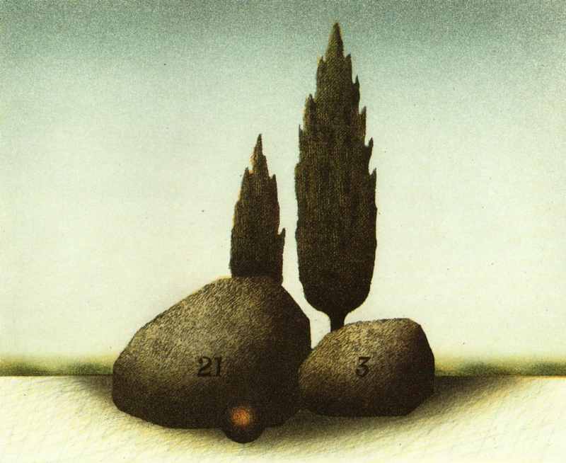 171. Italienisches Stilleben 1975 Format: 13 x 16 cm Vernis mou, Aquatinta, Roulette, Sandpapier auf Kupfer.3 Platten, 4 Farben: gelb, orange, graublau, schwarz. Auflage: 75 + XXV numerierte und signierte Exemplare Druck: Druckgrafik Kätelhön, Wamel Verlag: Fischer Fine Art Ltd., London Beilage für die Vorzugsausgabe des Ausstellungskataloges der Fischer Fine Art Ltd., London 1975 |