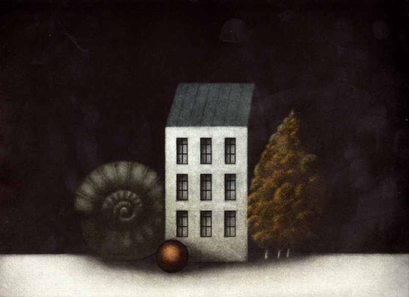 190. Mezzotintohaus 1978 Format: 20.5 x 28 cm Mezzotinto, Strichätzung, Aquatinta auf Kupfer.3 Platten,4 Farben: gelb, rot, blau, schwarz. Auflage 1000 + L numerierte und signierte Exemplare Druck: Atelier Georges Leblanc, Paris Verlag: Galerie Hartmann, München Alle Exemplare rückseitig mit dem Aufdruck "Meckseper-Monographie, Radierung der Vorzugsausgabe". Beilage 1 der Vorzugsausgabe der Monographie "Meckseper, Ölbilder und Radierungen". Erschienen 1978 im Verlag Piper und Co, München und Galerie Hartmann |