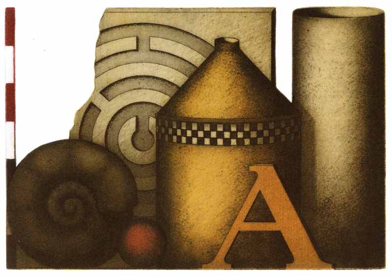 197. Stilleben 1978 Format: 16 x 23 cm Mezzotinto, Strichätzung, Aquatinta, Roulette auf Kupfer.3 Platten, 5 Farben: gelb, orange, rot, grün, schwarz. Auflage 100 + XX numerierte und signierte Exemplare Druck: Kurt Schönen, Worpswede Verlag: Galerie Schmücking, Braunschweig |