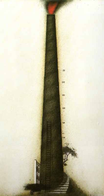 216. Leuchtturm 1981 Format: 59.5 x 31.5 cm Strichätzung, Aquatinta, Aussprengtechnik, Kaltnadel,Mouette, Roulette auf Kupfer. 3 Platten, 4 Farben: gelb,rot, graugrün, grünschwarz. Auflage: 100 + XX numerierte und signierte Exemplare Druck: Heiner Bunte, Lilienthal Verlag: Galerie Steinrötter, Münster Zusätzlich existieren 9 unterschiedliche, signierte Zustandsdrucke. |