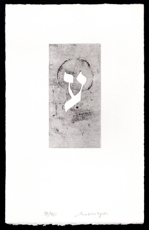 256. Hebräisches Alphabet, XVI Ajin 1990 Format: 12.5 x 6.5 cm Daniel, 12 Propheten,Aquatinta auf Kupfer 1 Platte, schwarz-weiss |