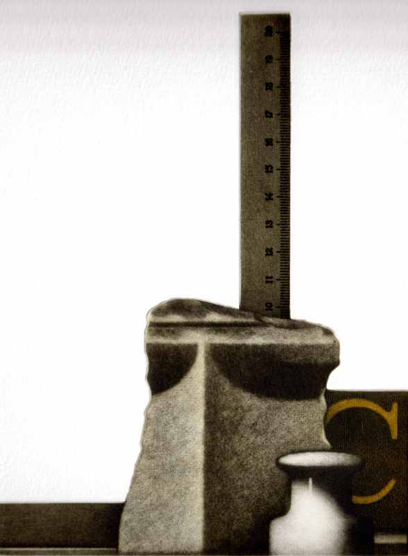276. Isolator 2003 Format: 19.5 x 15 cm Mezzotinto, Strichätzung, Aquatinta auf Kupfer,3 Platten, 3 Farben: gelb, grünschwarz, schwarz Auflage: 30 numerierte und signierte Exemplare Druck: Heiner Bunte, Lilienthal Verlag: Galerie Patrick Cramer, Genf und Galerie Peerlings, Krefeld Zusätzlich existieren 13 unterschiedliche, signierte Zustandsdrucke. |