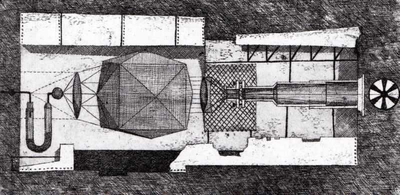 028. Physik 1959 Format: 12.5 x 24.5 cm Strichätzung auf Zink.1 Platte, schwarz-weiss. Auflage: ca 5 nicht numerierte aber signierte Exemplare Druck: selbst |