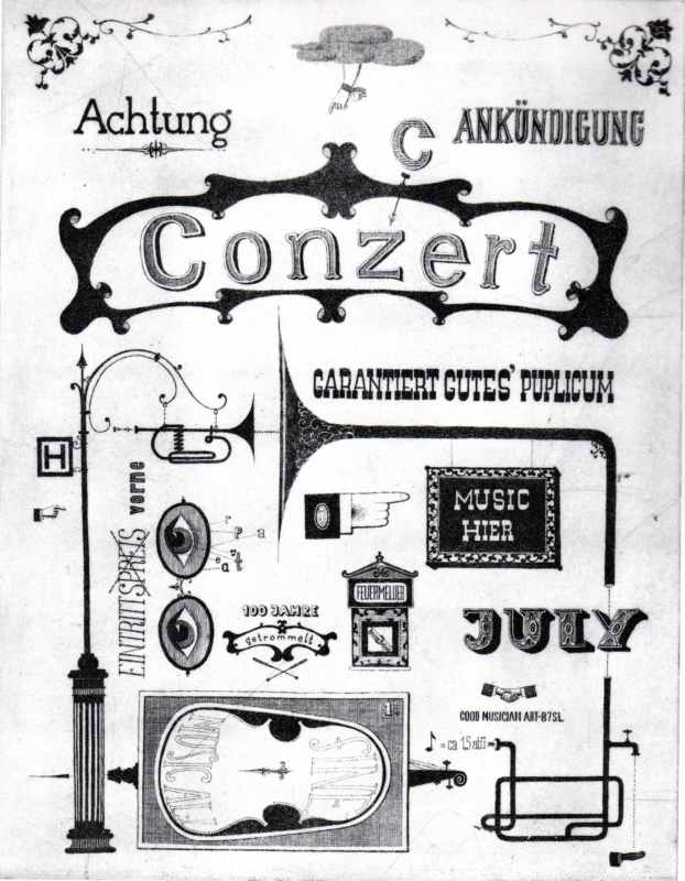 003. Conzert 1956 Format: 44 x 34 cm Strichätzung auf Zink.1 Platte, schwarz-weiss. Auflage: ca 10 nicht numerierte aber signierte Exemplare Druck: selbst |
