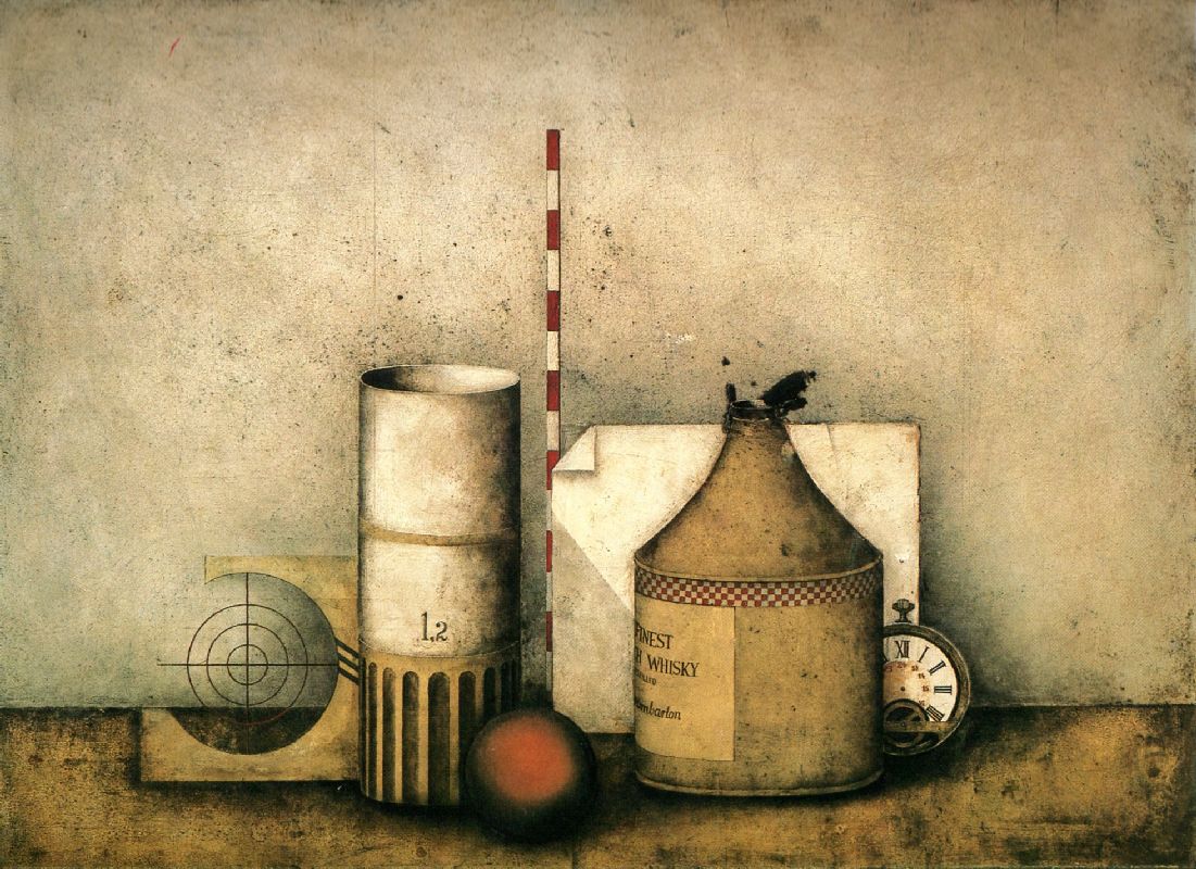 054. Stilleben mit Fadenkreuz 1965 Format: 50 x 65 cm Öl und Blattgold auf Hartfaser |