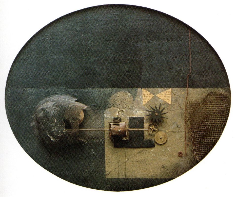 003. Getriebe 1960 Format: 25 x 30 cm verschiedene Materialien auf bemaltem Holz. |