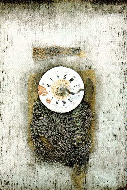 007. Rotweisses Ziffernblatt 1962 Format: 18 x 13 cm verschiedene Materialien auf bemaltem Holz. |