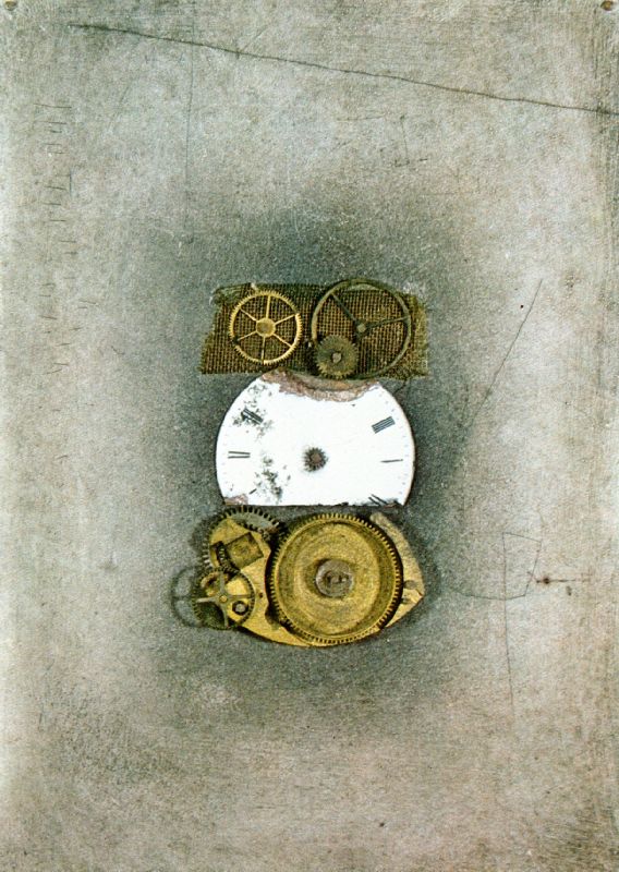 011. 12 Uhr 1963 Format: 14 x 10 cm verschiedene Materialien auf bemaltem Holz. |
