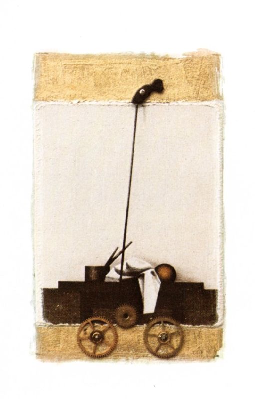 018. Fahrzeug 1976 Format: 18 x 13 cm verschiedene Materialien, 8.5 x 5.2 cmauf weiss grundiertem Holz |