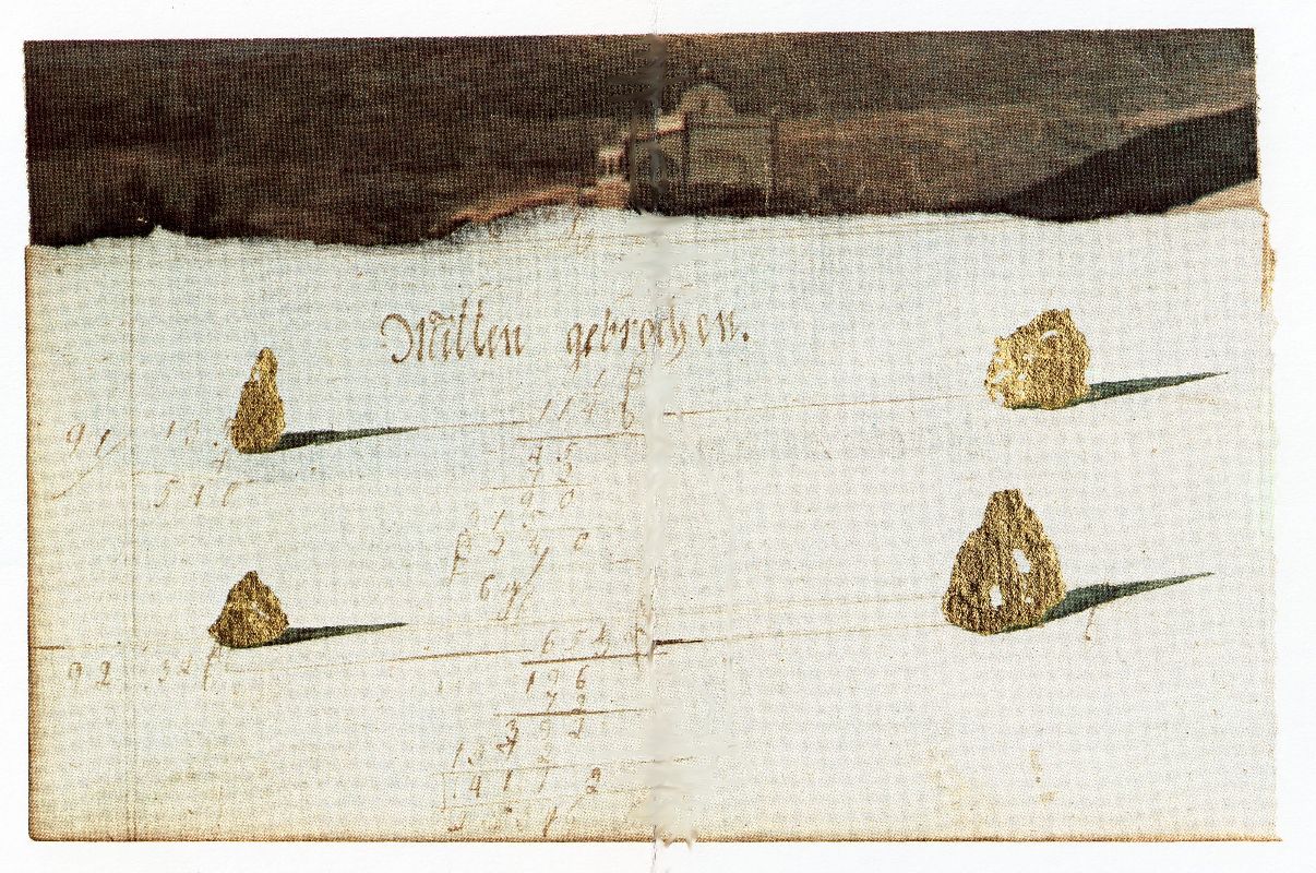 022. Mitten gebrochen 1976 Format: 28 x 38 cm Collage, 10.5 x 16 cm auf weissem Papier |