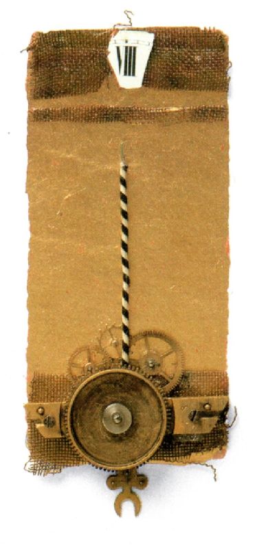 047. Maschinchen 1979 Format: 17.5 x 13 cm verschiedene Materialien, 8.5 x 3.5cmauf weiss grundiertem Holz. |