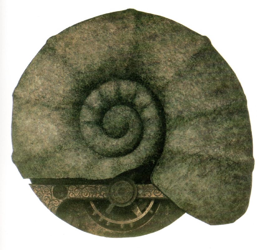 049. Mechanischer Ammonit 1979 Format: 19 x 20 cm Collage auf weissem Papier |