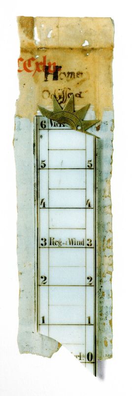 087. Odyssee 1987 Format: 24 x 16 cm Pergament, Messing, Porzellan 18 x 5 cm,auf weissem Papier auf Holz aufgezogen |