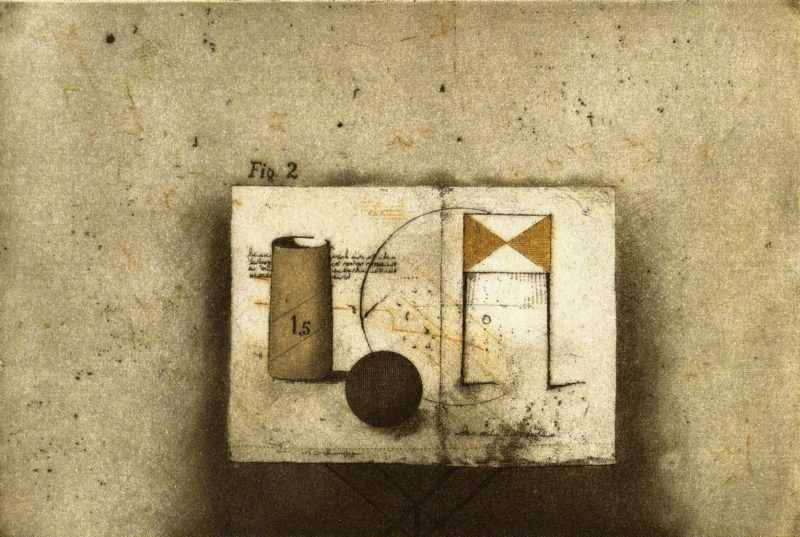 071. Tisch mit Kugel 1965 Format: 20 x 29.5 cm Strichätzung, Aquatinta, Frottage, Kaltnadel auf Kupfer.2 Platten, 2 Farben: rotgelb, schwarz Auflage: 90 numerierte und signierte Exemplare. Druck: Willy Steinert, Weingarten Verlag: Galerie Brockstedt, Hamburg erschienen in der Galerie Brockstedt, Hamburg, 1966. Ca. 30 teilweise römisch numerierte und signierte Exemplare existieren als Farbvarianten. |
